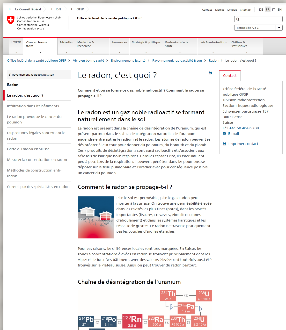 Le radon, c'est quoi ?Présentation<p>Page du site de l'OFSP</p>